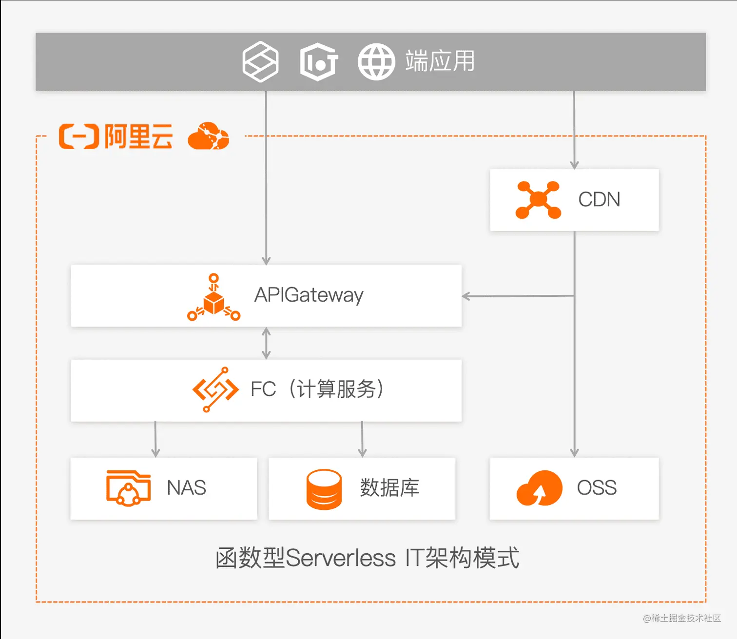 API 网关和 FC 计算服务的关系如下图所示:
