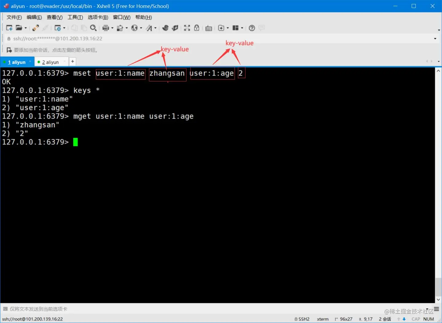 重点 设置一个对象:set user:1 {name:zhangsan,age:3},设置一个user:1对象,值为json字符串来保存一个对象。 这里的设计是user:{id}:{filed},这样的设计在redis中是完全ok的了