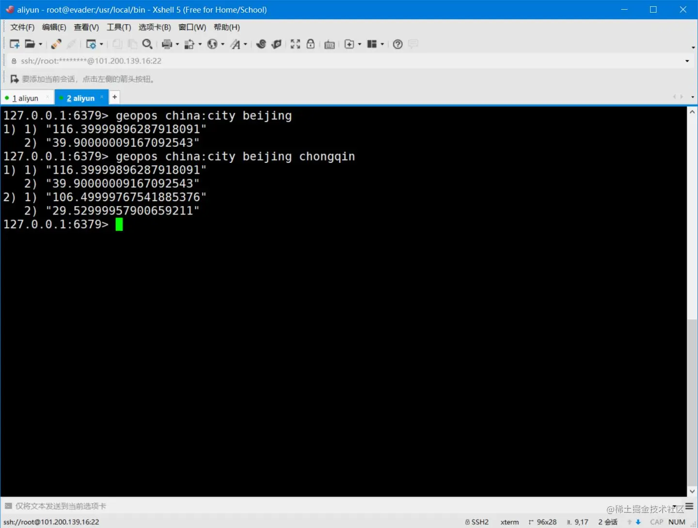 geohash:返回一个或多个元素的geohash表示,该命令返回11位
