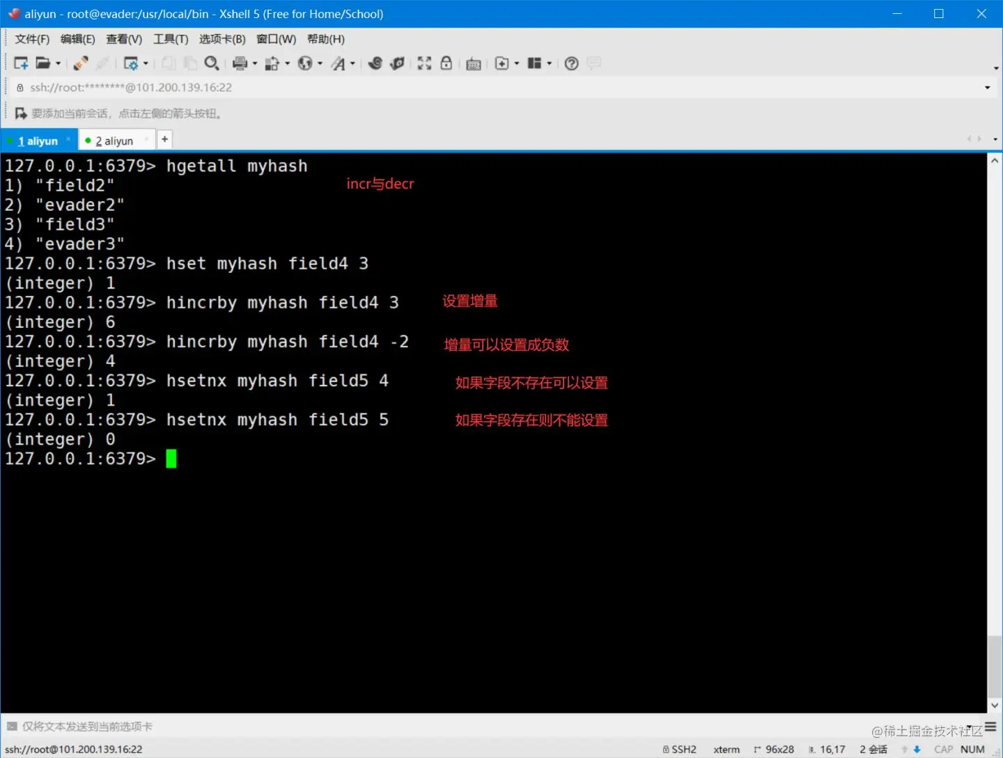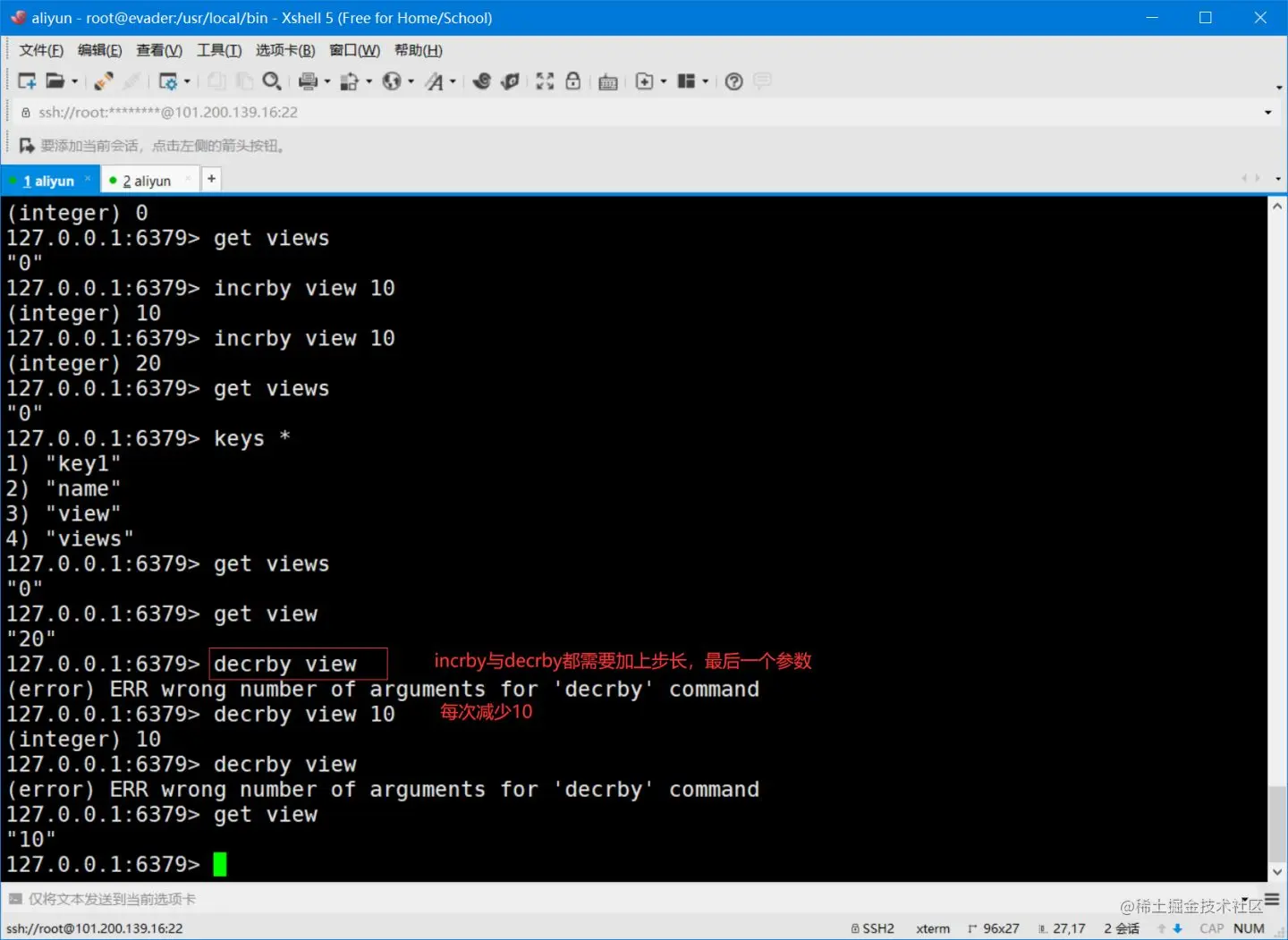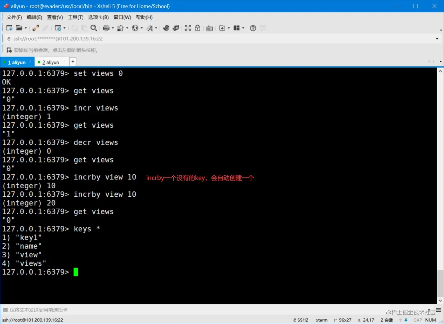 使用incr与decr命令实现自增与自减,实际场景用做浏览量等