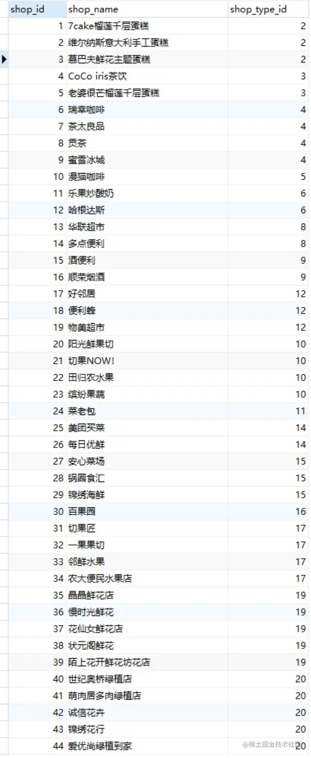 案例我建了两张表,分别是shop(商店表)跟type(分类表)。在type中有个字段shop_type_id对应的是分类表中分类id。