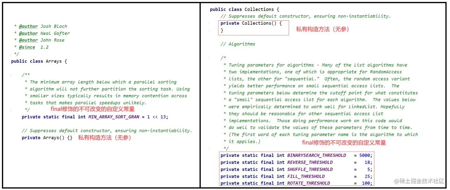 上图是Java中的两个工具类,Arrays跟Collections。从来没有接触过单例的同学,看了上图内心毫无波澜,往下看即可。接触过单例的同学带着这个问题看下面的内容:单例模式要求显式定义一个无参的构造函数,Arrays跟Collections都有私有的无参构造,为什么它们不设计成单例吗?