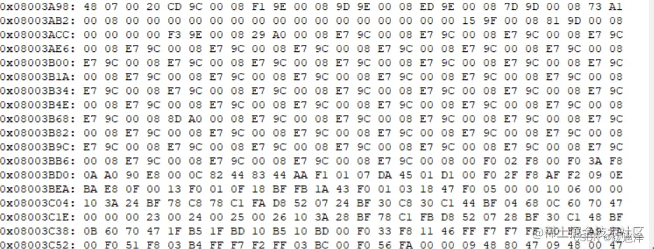 我们在地址处填写想查看的地址,比如查看0x0800 3A98,输入完成后点击回车,就会出现Flash地址对应的内容。