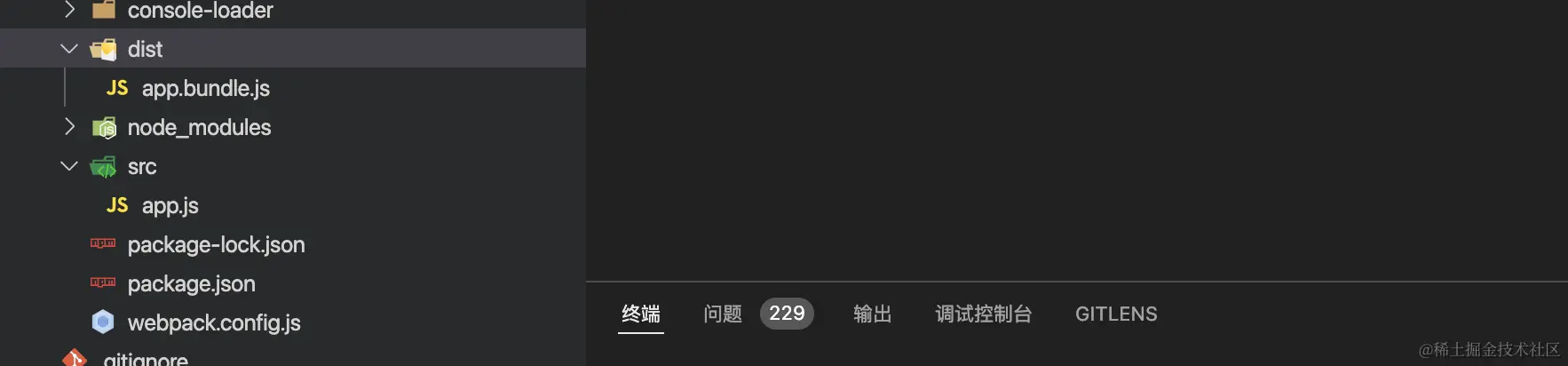 此时就会生成一个在dist文件,并且名字就是app.bundle.js