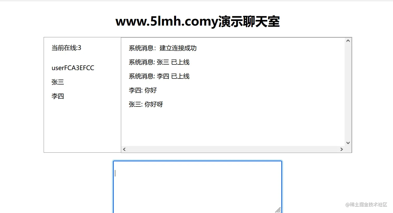 <h1>www.5lmh.comy演示聊天室</h1>