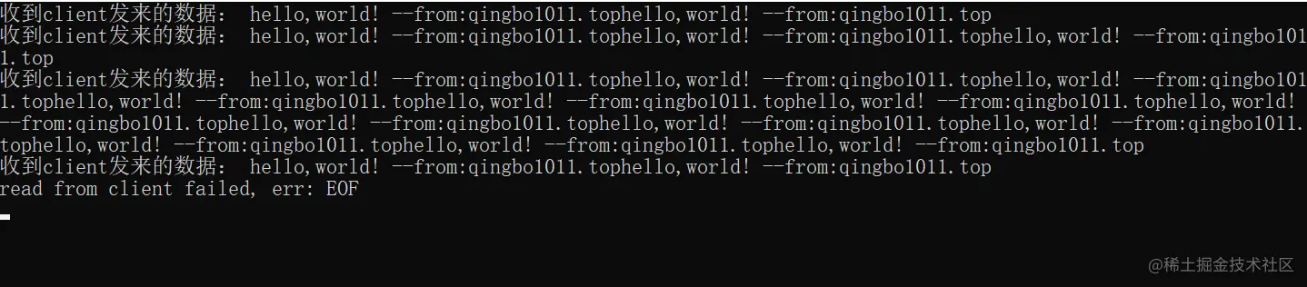 conn.Write([]byte(recvStr)) // 发送数据