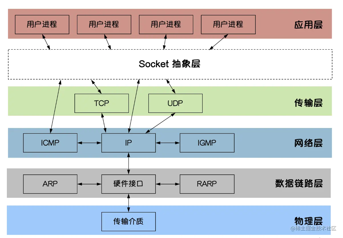 Socket是应用层与TCP/IP协议族通信的中间软件抽象层。在设计模式中,Socket其实就是一个门面模式,它把复杂的TCP/IP协议族隐藏在Socket后面,对用户来说只需要调用Socket规定的相关函数,让Socket去组织符合指定的协议数据然后进行通信。