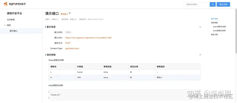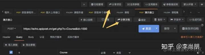 我们在“2分钟玩转APIPOST”一讲中,简单介绍了如何生成并分享接口文档: