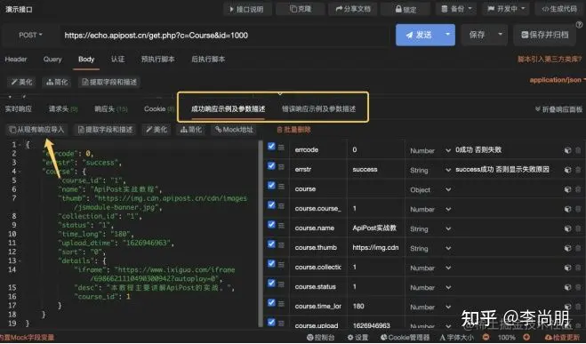 很多新手困惑为什么APIPOST分享的文档没有成功响应示例和错误响应示例,那是因为APIPOST不会把发送后的实时响应的数据作为响应示例。