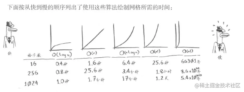 - O(n!),这样的算法包括旅行商问题的解决方案----一种非常慢的算法。