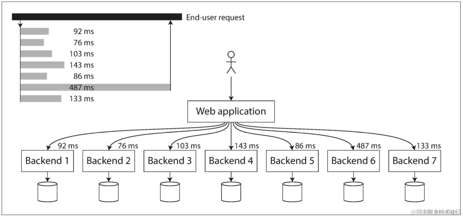 即使只有很小百分比的请求缓慢,若某用户总是频 产生这种调用 ,最终总休变慢的概率就会增加(即长尾效应)。