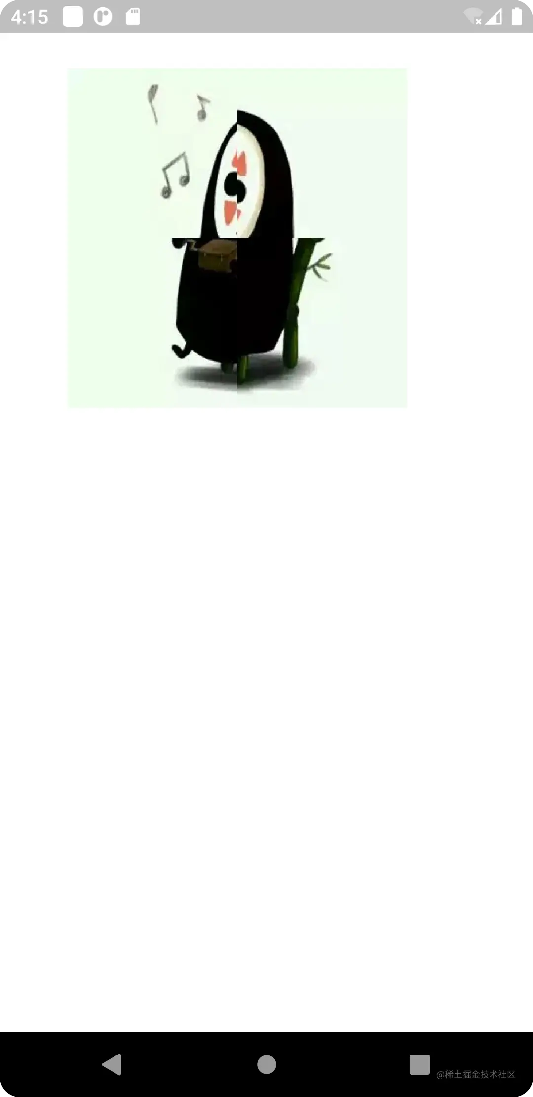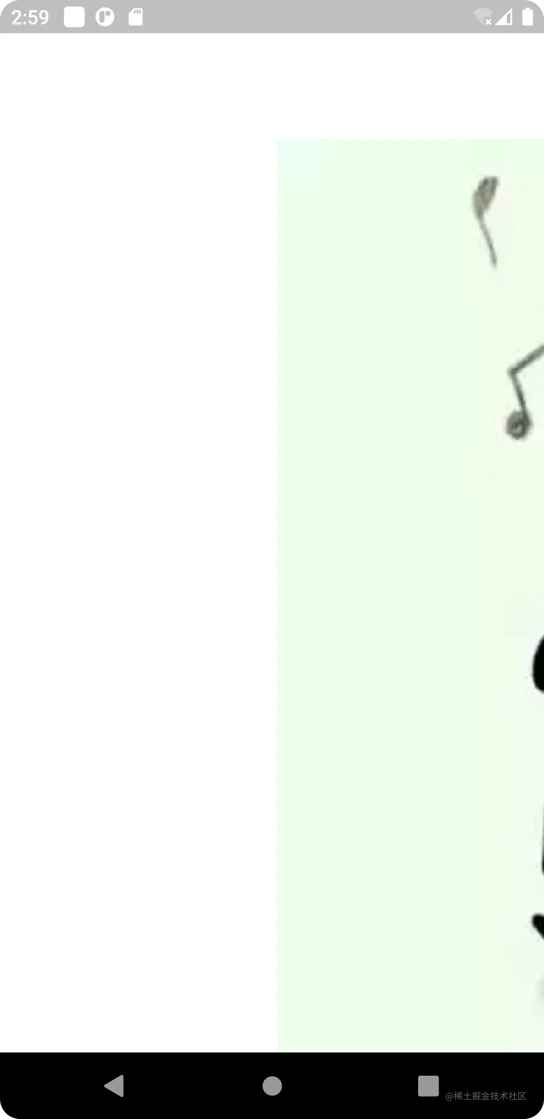 我们可以看到,左图中被颜色覆盖的区域就是可拉伸区域,当其需要被拉伸的时候,这块区域就会被拉伸,就像右图那样脸被拉宽了,但是音符并没有变形,所以,drawImageNine 中的 Rect center 其实描述的就是左图中的被紫色覆盖的区域,而 Rect dst 其实就是把图片放到 dst 的区域,但是原图不一定跟 dst 区域保持一致,这时就好拉伸,而拉伸的区域就是上述讲的左图被颜色覆盖的区域,并不是指紫色那块区域。