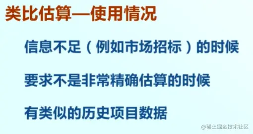 当项目信息不足的时候,要求不是非常精确估算的时候,有类似的历史项目数据。