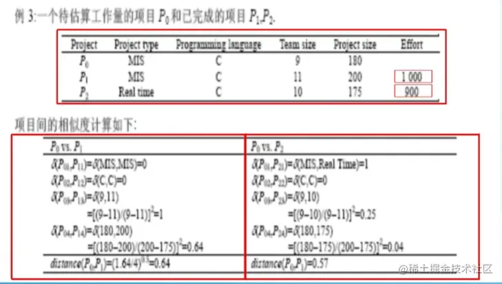 同理P0和P2也相似,当然可以选择P1和P2的均值作为相似项目的类比估算的结果,得到最后的规模成本。