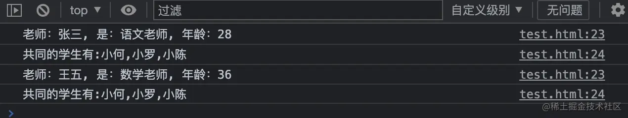 console.log(`老师:${ this.name }, 是:${ this.type }, 年龄:${ this.age }`)