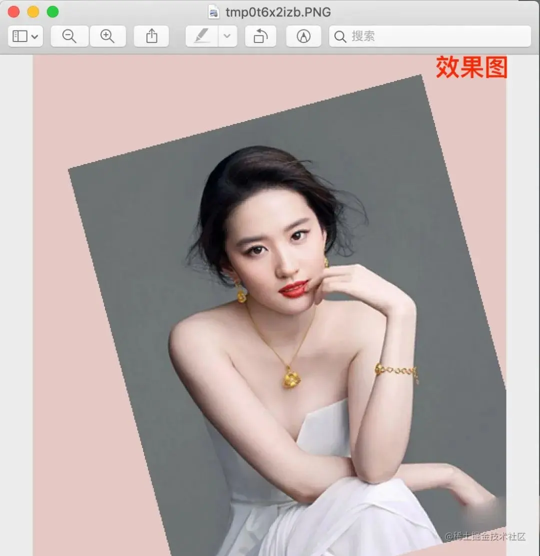 - expand, 可扩展性。传入数字0或1,表示布尔值,默认为0。如果值为0,对图片旋转后,返回图片的尺寸与原图尺寸一样。如果值为1,则旋转后,返回图片的尺寸会根据旋转角度自动调整(如果旋转中心保持默认和没有进行平移,则返回图片中可以看到完整的原图)。