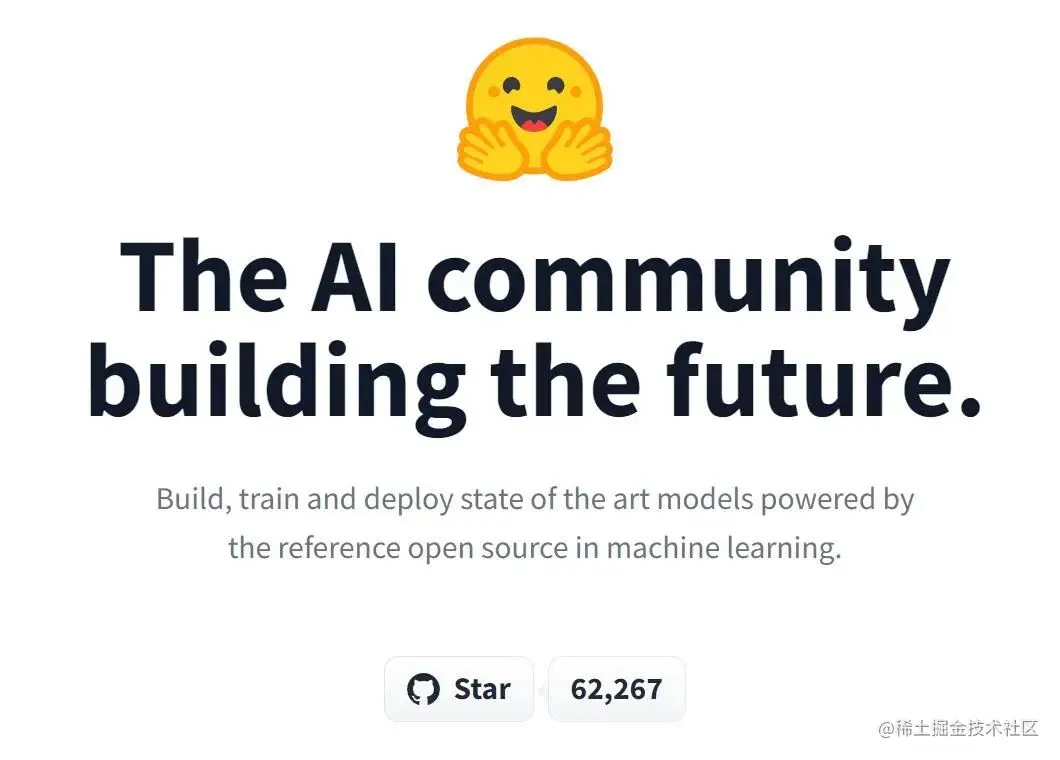从事 AI 技术开发的同学应该知道,GitHub 上有一个 Logo 为笑脸 Emoji 的开源项目:Hugging Face。它的 transformer 模型在 GitHub 拥有 6.2 万 star 量,从当前项目估值来看,一个 Star 价值 1600 美元。
