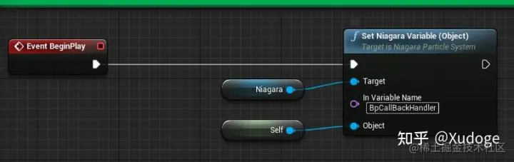 NiagaraSystem中设置一个 Object 参数,名称如上对应蓝图中的(Niagara 所要通知的对象) Variable Name