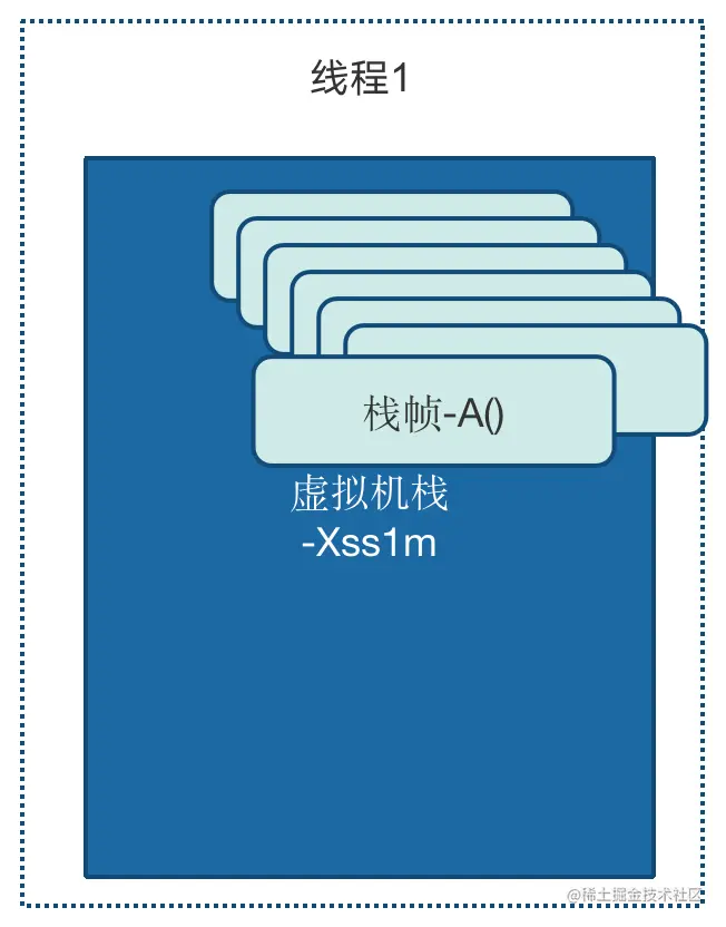 如果我们不断的往虚拟机栈中入栈帧,但是就是不出栈的话,那么这个虚拟机栈就会爆掉。