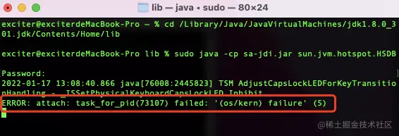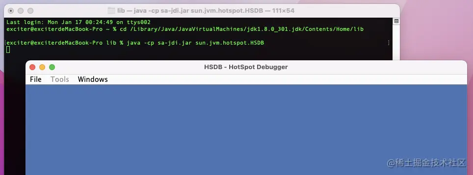 exciter@localhost lib % sudo java -cp sa-jdi.jar sun.jvm.hotspot.HSDB