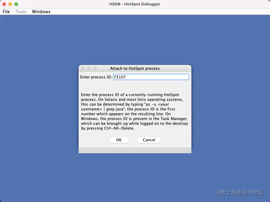 进入到jdk的lib目录下,执行sudo java -cp sa-jdi.jar sun.jvm.hotspot.HSDB