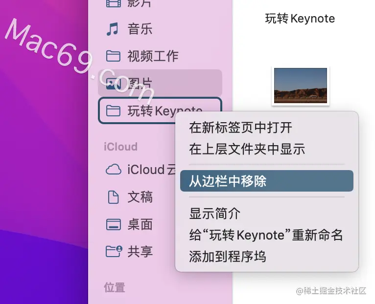 不想固定在这里了怎么办?如果是固定在左边栏,只需要点鼠标右键,然后选择「从边栏移除」就行了。