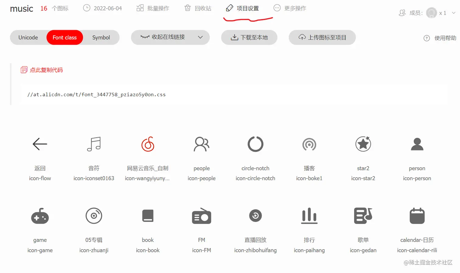 而在复制代码 时,会有个前缀 “icon-”,在使用时删除即可,这也可以在之前的项目设置里设置。