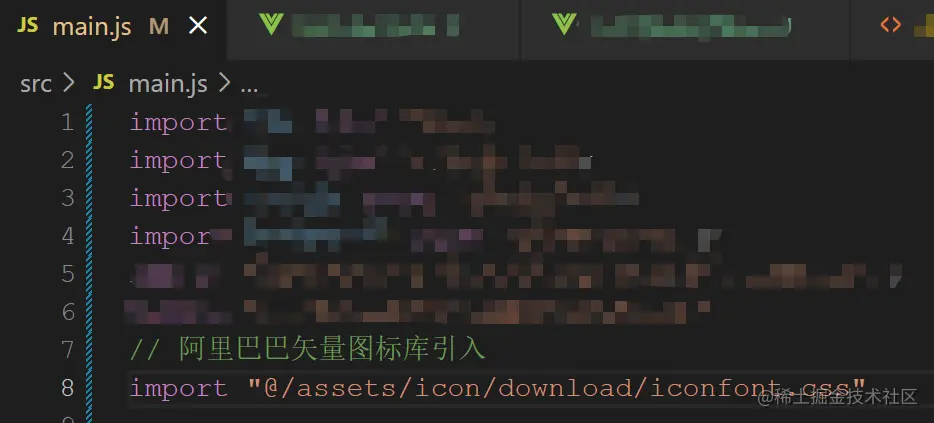 首先在 Vue 的入口文件 (main.js)引入刚下载的 iconfont.css 文件