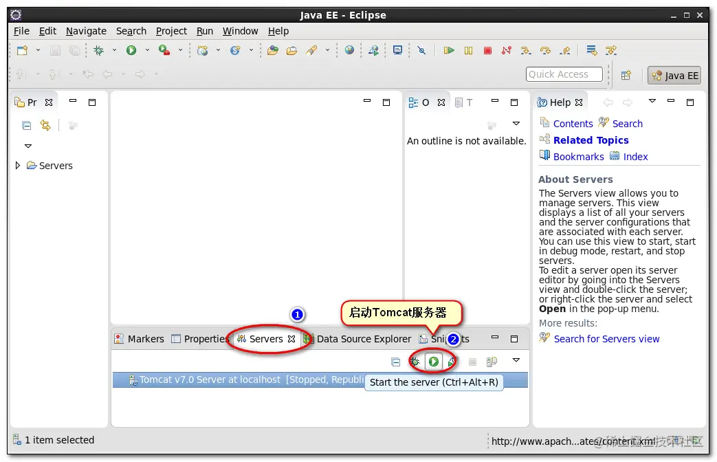 8.在Eclipse服务器视图启动Tomcat服务器: