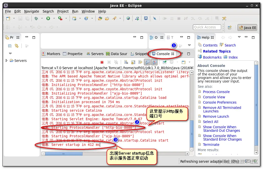 9.查看在Eclipse控制台视图中得到的启动结果:
