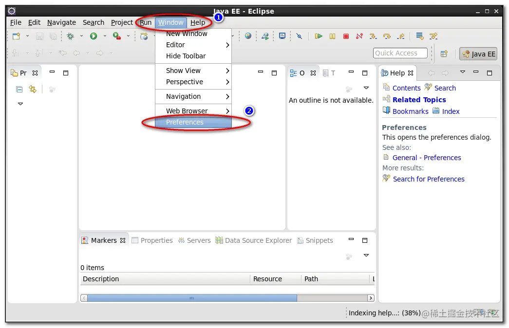 2.打开Eclipse 找到首选项设置:
