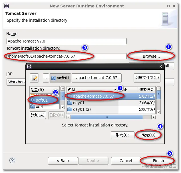 5.选择Tomcat 服务器的安装目录(参考步骤 1):