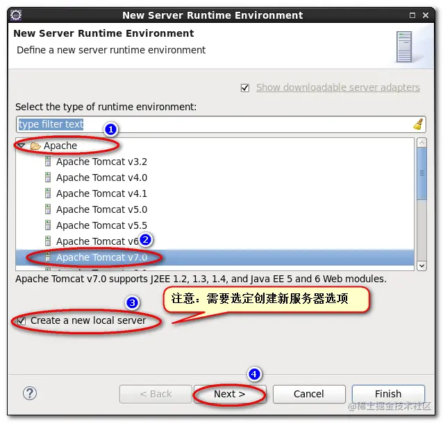 4.选择添加Tomcat 7 项目, 需要选择创建新服务器实例项目: