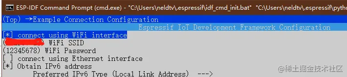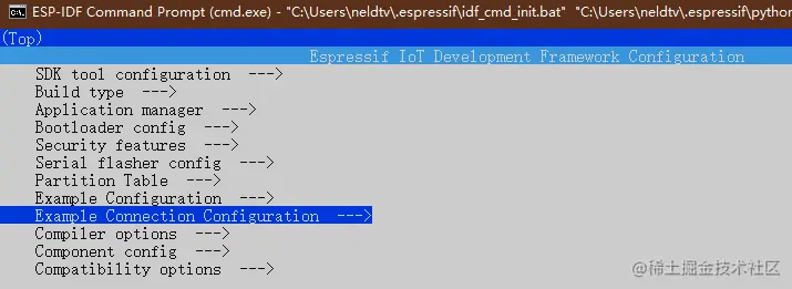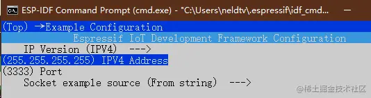 idf.py menuconfig 配置服务器IP和端口