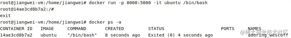 sudo docker run -p 8001:5000 -it ubuntu /bin/bash # 通过本地的ubuntu镜像去创建容器