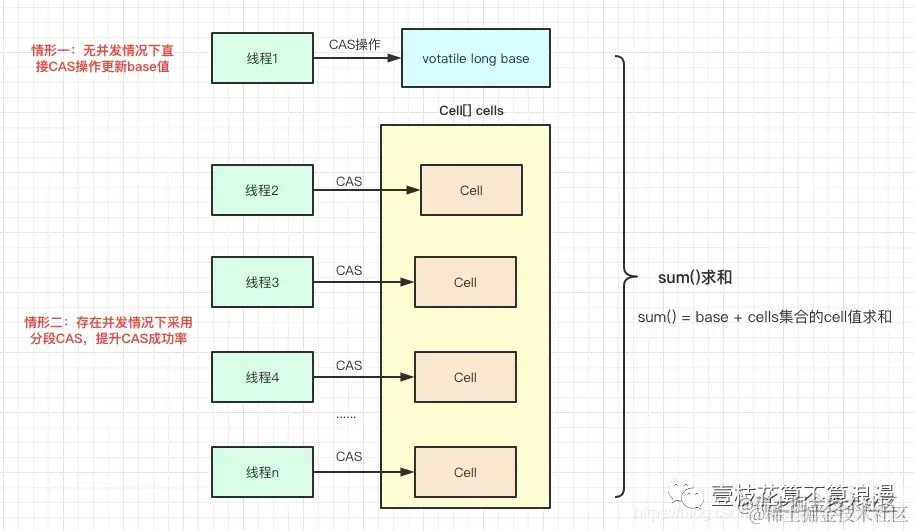 先看下LongAdder的操作原理图:(图片参考自面试官问我LongAdder,我惊了…)