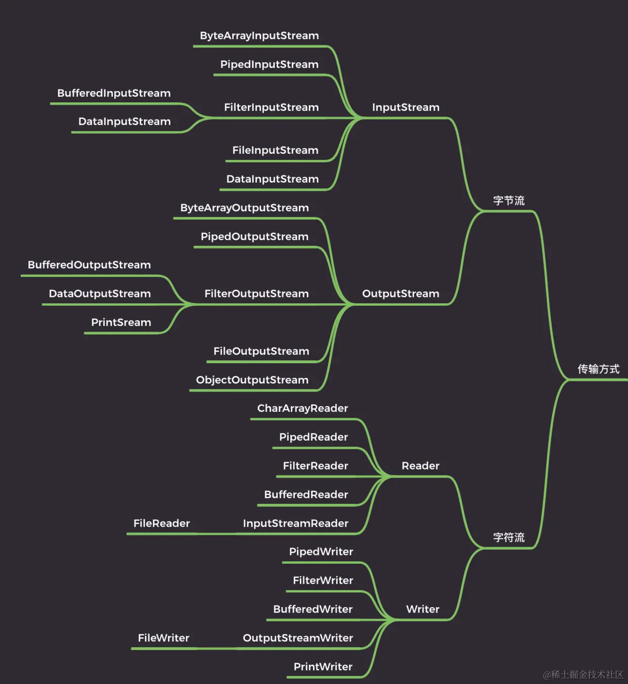 按流的角色的不同分为:节点流,处理流/包装流