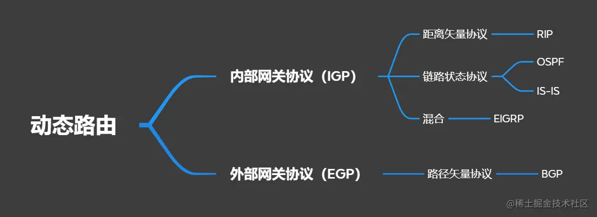 在上图中,我们看到了几个关键词:距离矢量、链路状态、混合、路径矢量。