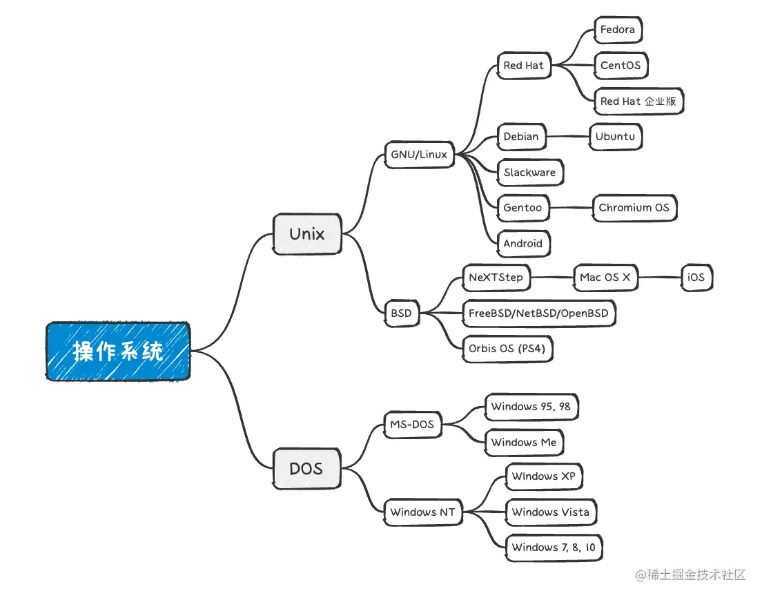 目前市面上大部分的操作系统都可以分为两类:一类是基于微软Windows NT内核的操作系统,而剩余其他几乎所有的操作系统的祖先都是Unix。