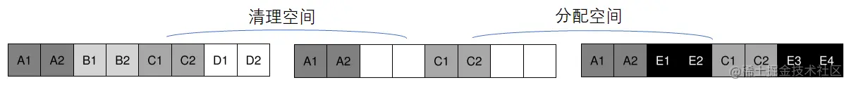 对于大文件要特殊处理,不然可能会占满整个组,破坏局部性,如下图左侧所示,没有多少剩余空间给其它文件了。解决的方式也很简单如右图所示。