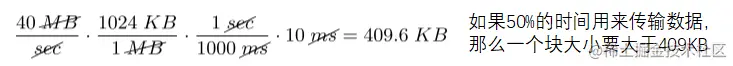 有人可能会注意到这种分散的存储方式会降低性能,因为需要在不同的组上来回切换。解决方案是增大块大小,因为假如块足够大,文件分散的组就少,这种方式也称为摊销(amortization),文件系统将会花费大量时间在磁盘传输上而不是搜索磁道。也就是说,峰值性能越高,所需的块大小越大,如下图所示。