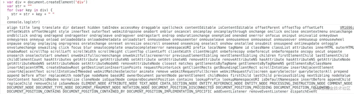 真实的DOM节点,哪怕一个最简单的div也包含着很多属性,可以打印出来直观感受一下: