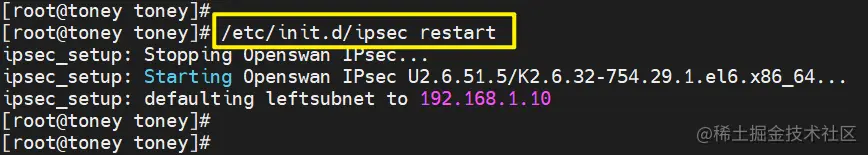 将此命令重新输出到日志文件/home/ipsec.log中,方便查看调用的命令信息: