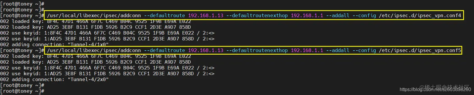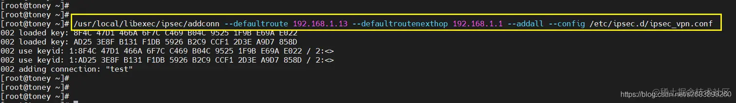 因此与加载配置文件有关的命令是:ipsec addconn