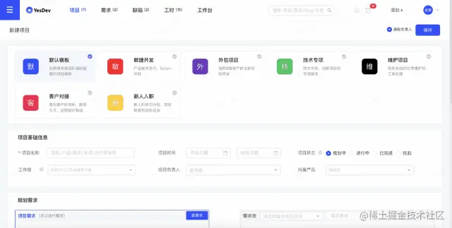 YesDev提供了常用的技术项目模板,有: