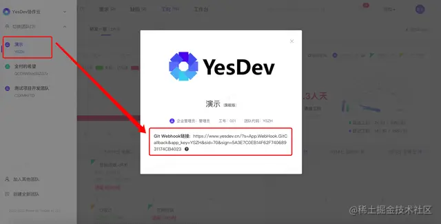 然后,复制YesDev提供的地址,并添加到你的Git仓库WebHooks中。