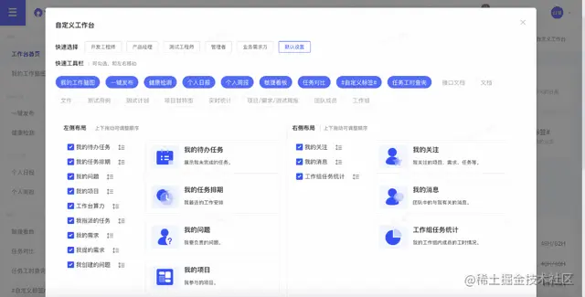 首先,作为个人,你可以在【工作台】中自定义所需要的工作小工具。