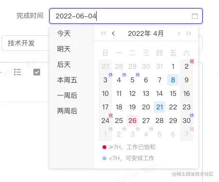 3)本周是否有放假,例如上图中的6月3号~6月5号是端午放假,方便提醒团队合理进行工作安排;