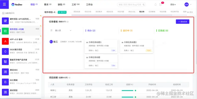 在单个项目中,也可以看到本项目的任务看板。