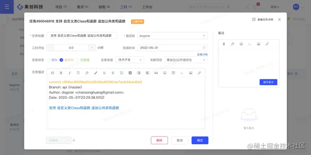 提交成功后,就可以看到YesDev已经为你智能判断并自动创建了当天的开发任务,例如:
